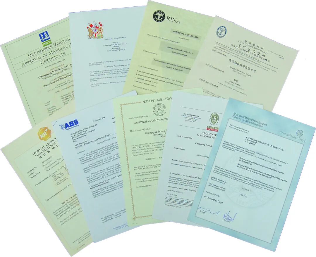 1981年9月11日至12日,中國國家船檢局(對外為中國船級社)對重鋼出口船板的工藝規程、檢測手段和產品質量進行了嚴格檢查,確認各項指標均符合規定,隨后在1982年3月20日頒發了認可證書,這是重鋼在船級社認證道路上邁出的重要一步。