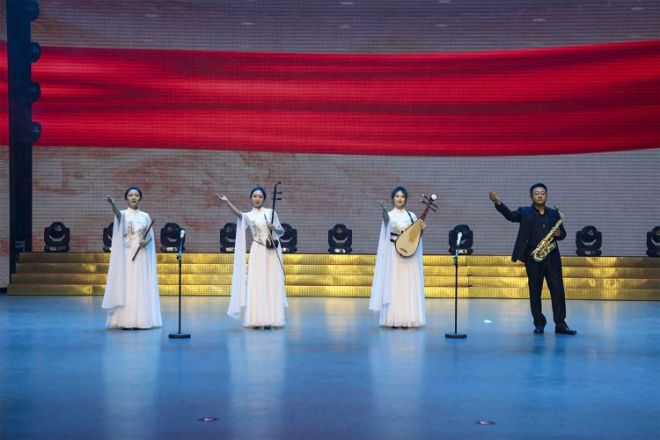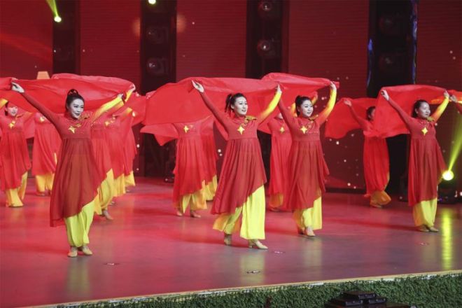 主題晚會在觀眾的掌聲中拉開序幕,開場舞《赤旗》以氣勢磅礴、優美大氣的舞姿贏得滿堂喝彩。
