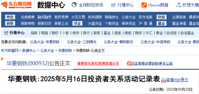 在此之前,華菱鋼鐵于5月20日披露接待公告。