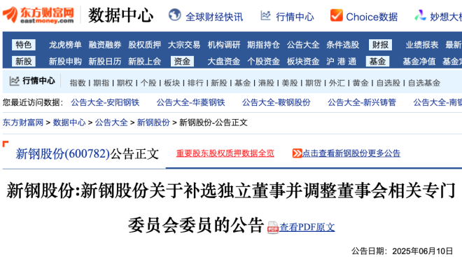 6月10日,新鋼股份發布了《新鋼股份關于補選獨立董事并調整董事會相關專門委員會委員的公告》(以下簡稱《公告》)。