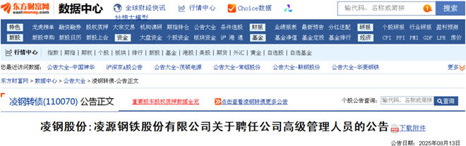 8月13日,凌鋼股份發(fā)布《凌源鋼鐵股份有限公司關(guān)于聘任公司高級(jí)管理人員的公告》。