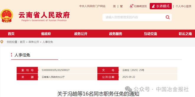 9月22日,云南省人民政府公布了16名同志職務任免的通知。