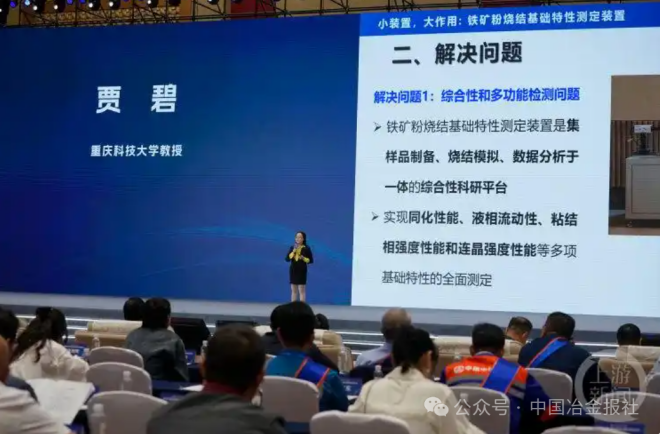 現(xiàn)場,重慶科技大學(xué)教授賈碧以《小裝置,大作用:鐵礦粉燒結(jié)基礎(chǔ)特性測定裝置》為題,分享了自己創(chuàng)新成果的亮點(diǎn)和特色。