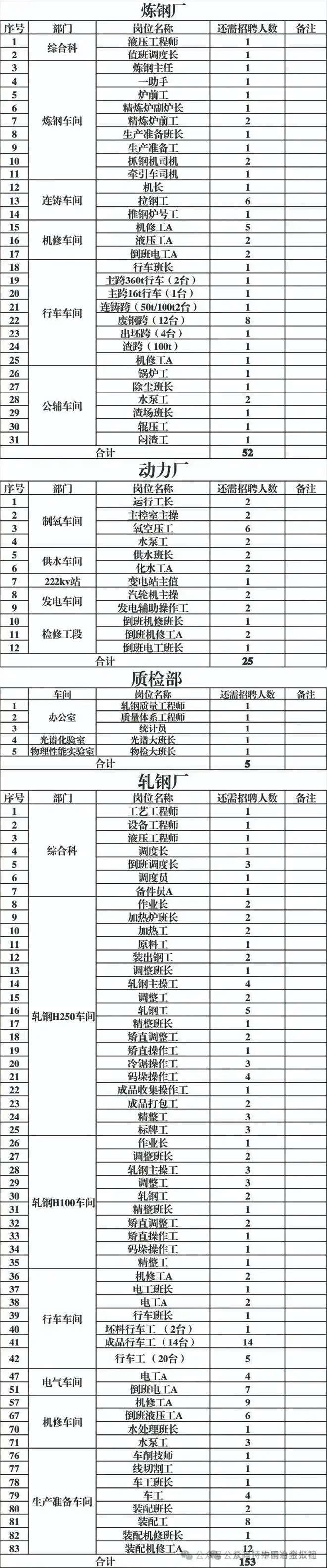 遵義長嶺特鋼項目建設取得重大進展,這座總投資60億元、占地1421畝的現代化特鋼基地即將正式投產。為滿足生產運營需要,公司10月8日啟動大規(guī)模招聘,面向煉鋼廠、動力廠、質檢部、軋鋼廠四個部門計劃招聘235人,為西南地區(qū)特鋼產業(yè)發(fā)展儲備人才力量。