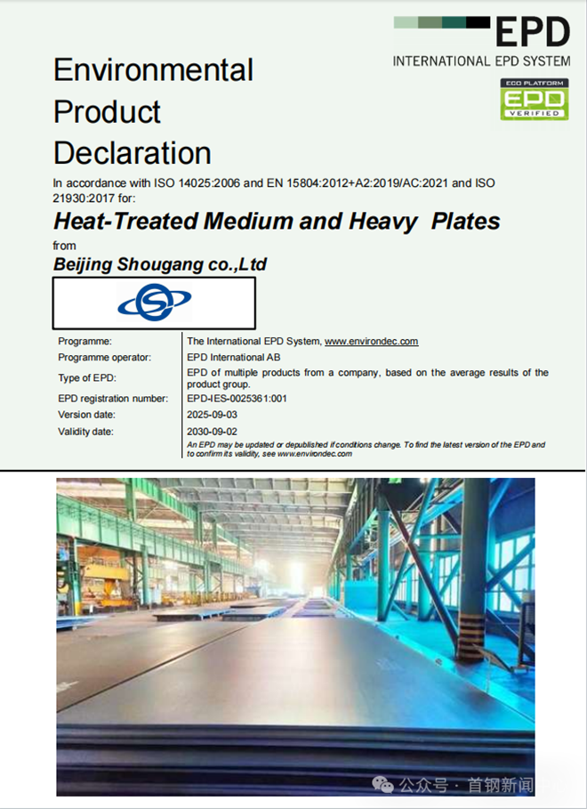 近日,首鋼京唐首次完成兩份中厚板產品國際EPD發(fā)布,涵蓋軋態(tài)和熱處理兩類鋼板交貨狀態(tài),成為國內少數取得國際EPD認證的鋼鐵企業(yè)之一,為相關產品出口獲取了重要的“綠色通行證”。