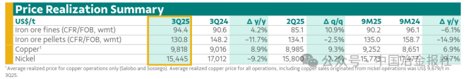 其中顯示,鐵礦石業務方面,產量達到2018年以來最高水平,價格實現亦有所改善。