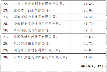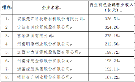 9月12日,為推動再生有色金屬產業高質量發展,培育壯大領軍企業并樹立行業標桿,中國有色金屬工業協會再生金屬分會聯合中國有色金屬工業協會信息統計部,依據嚴謹、公正、科學的原則,對企業自主申報的2024年再生有色金屬營業收入進行了審核和排序,經公示無異議,發布2024年再生有色金屬企業營業收入30強名單。