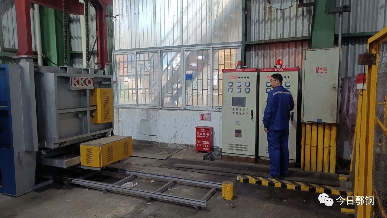 吳暉,是制造管理部(質檢中心)物理(工序)檢驗車間首操。車間金相(熱處理)班負責試樣熱處理工作,現有熱處理爐9臺,其中大爐膛的臺車爐3臺,小爐膛的高溫爐6臺。容器板在進行模擬焊接熱處理時,現有熱處理工藝是將50-60kg的鋼板樣坯吊入臺車爐(20塊/爐)內進行熱處理,出爐后在臺車上自然冷卻后開始制樣。來樣第一天進爐,第二天出爐,降溫8小時后中班開始制樣,最快第三天才能出結果。現因容器板的生產節奏快、檢驗周期短、現有的熱處理工藝無法滿足生產需求。