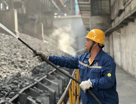 一塊塊紅彤彤的焦炭被裝入濕熄焦車
