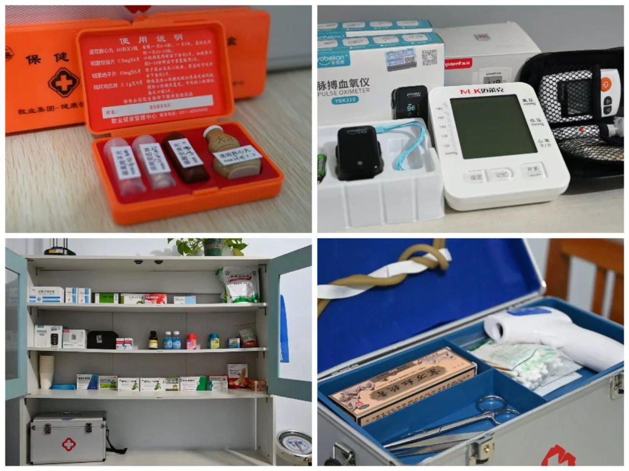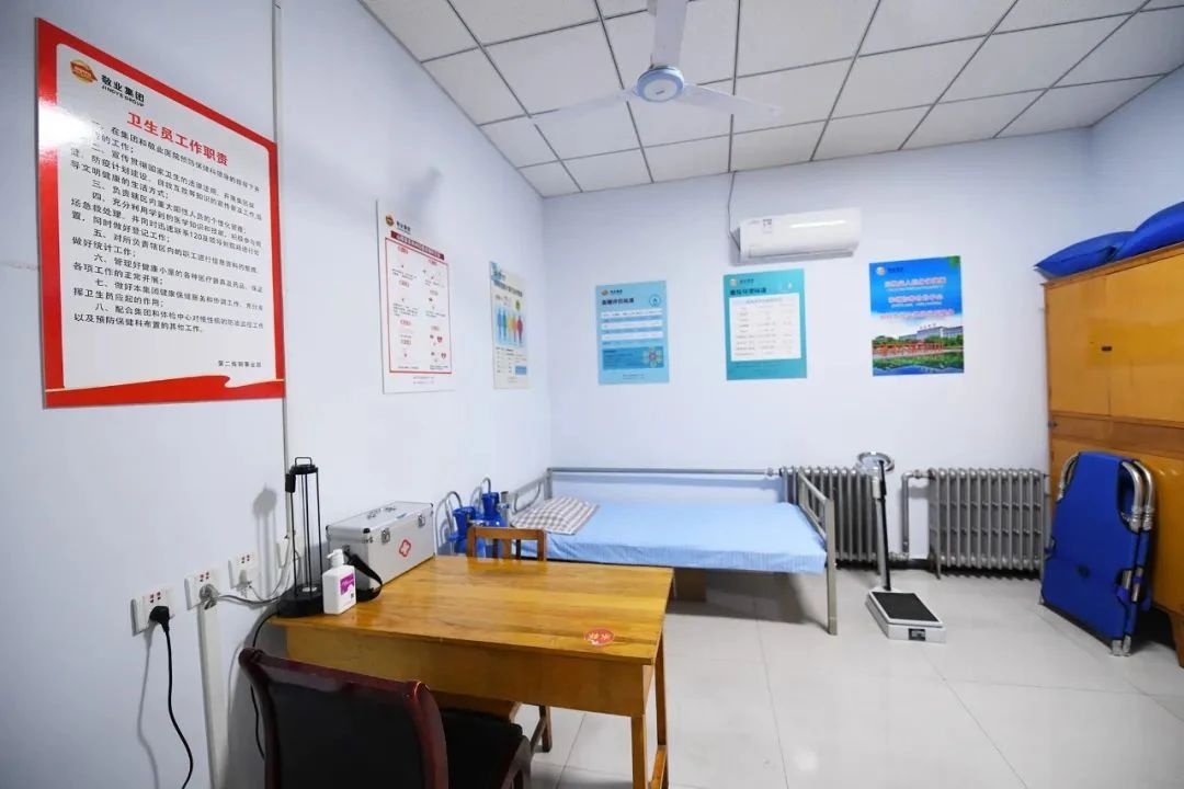 為筑牢員工健康防線,敬業集團自2022年以來,在各單位設立健康小屋,目前已設立49個。這些健康小屋以“位置便利、貼近車間”為原則,深入輻射各生產區域,成為工友們身邊的“健康驛站”。健康小屋配齊血壓計、血糖儀等基礎醫療設備,備有硝酸甘油、速效救心丸、燒燙傷膏等應急藥品,墻上則醒目張貼著BMI知識、血壓血糖標準、膳食寶塔圖等健康宣傳內容,讓健康知識隨手可及。此外,各車間崗位也配備了急救藥箱。