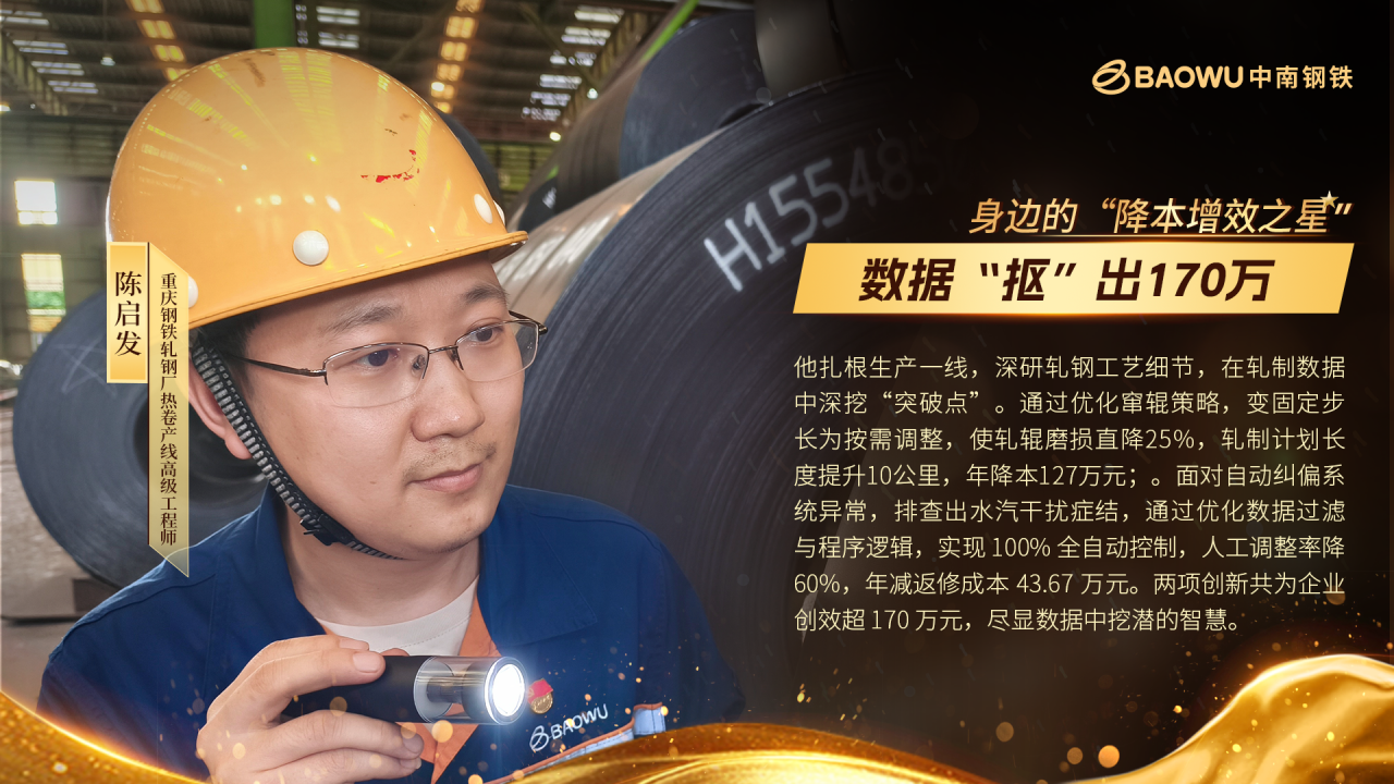 在重慶鋼鐵軋鋼廠熱卷產(chǎn)線,高級工程師陳啟發(fā)是個“另類”——他的“辦公室”常在現(xiàn)場。他扎根一線,與操作工并肩作戰(zhàn),將目光鎖定生產(chǎn)實(shí)際,以“崗位創(chuàng)新”為犁,深耕鋼鐵軋制的沃土,硬是從龐雜數(shù)據(jù)中“淘”出真金白銀,將降本增效鍛造成沉甸甸的效益。今天,讓我們走進(jìn)軋鋼廠,一起聽聽陳啟發(fā)的降本故事~~