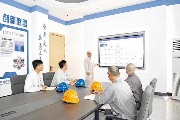 圖為攻關(guān)團(tuán)隊(duì)成員討論含酸廢水處理工藝優(yōu)化方案。