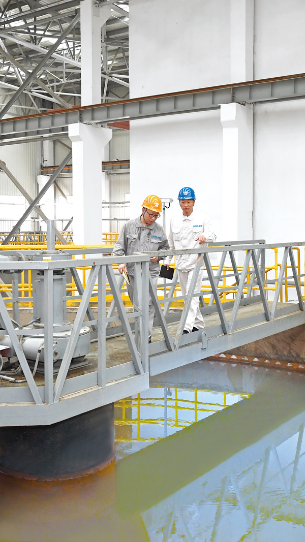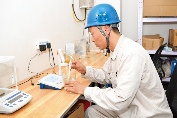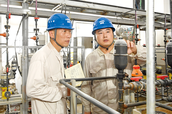 圖為攻關(guān)團(tuán)隊(duì)成員檢查自動(dòng)加藥系統(tǒng)運(yùn)行情況。