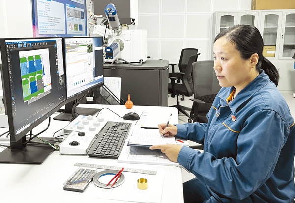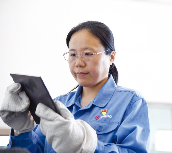 拿著從正式鋼板上取回的試樣,莊迎與同事探討該如何將工藝參數(shù)進(jìn)一步優(yōu)化,讓產(chǎn)品性能提升一個(gè)新高度。