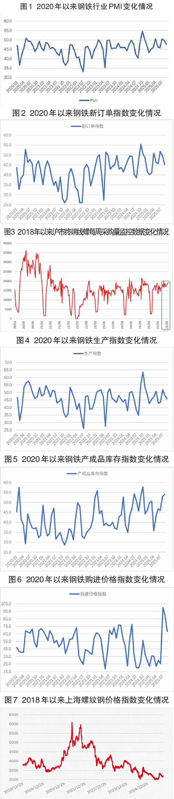 原材料價格繼續(xù)高位運行,煉鋼成本壓力持續(xù)加大。9月份,由于鋼廠生產活動有所放緩,鋼廠原材料采購活動同步趨緩,采購量指數環(huán)比下降5個百分點至48.5%,結束連續(xù)2個月在擴張區(qū)間運行態(tài)勢,并創(chuàng)下第2季度以來的新低,但煉鋼原材料價格仍保持高位運行,購進價格指數連續(xù)3個月運行在60%以上的高位區(qū)間。9月份,分品種來看,鐵礦石價格呈現沖高回落運行態(tài)勢,9月上旬受“反內卷”消息及旺季預期提振,下旬終端需求不及預期導致價格波動下行,但整體較8月份仍有上升;焦炭的供給端持續(xù)偏緊,價格繼續(xù)維持在較高水平;廢鋼價格也有上升態(tài)勢。整體來看,9月份的原材料價格繼續(xù)高位運行,煉鋼成本壓力持續(xù)加大。