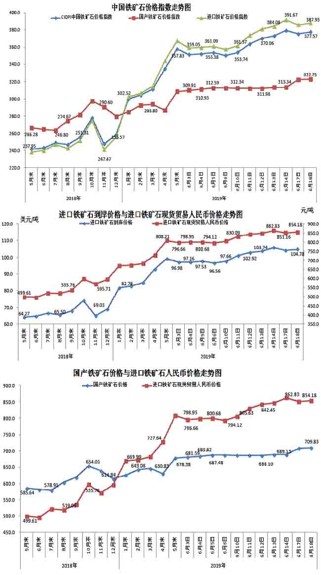 6月18日,中國鐵礦石價格指數(shù)(CIOPI)377.57點,環(huán)比上升2.04點,升幅為0.54%。其中:國產(chǎn)鐵礦石價格指數(shù)為322.75點,環(huán)比上升0.52點,升幅為0.16%;進口鐵礦石價格指數(shù)為387.93點,環(huán)比上升2.33點,升幅為0.60%。