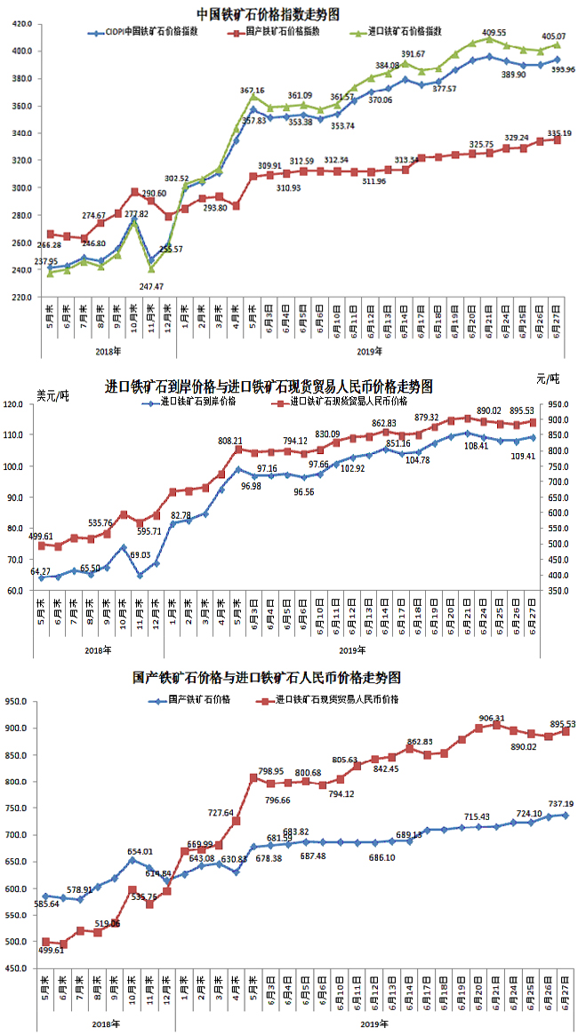 6月27日,中國鐵礦石價格指數(shù)(CIOPI)393.96點,環(huán)比上升3.94點,升幅為1.01%。其中:國產(chǎn)鐵礦石價格指數(shù)為335.19點,環(huán)比上升1.10點,升幅為0.33%;進口鐵礦石價格指數(shù)為405.07點,環(huán)比上升4.48點,升幅為1.12%。