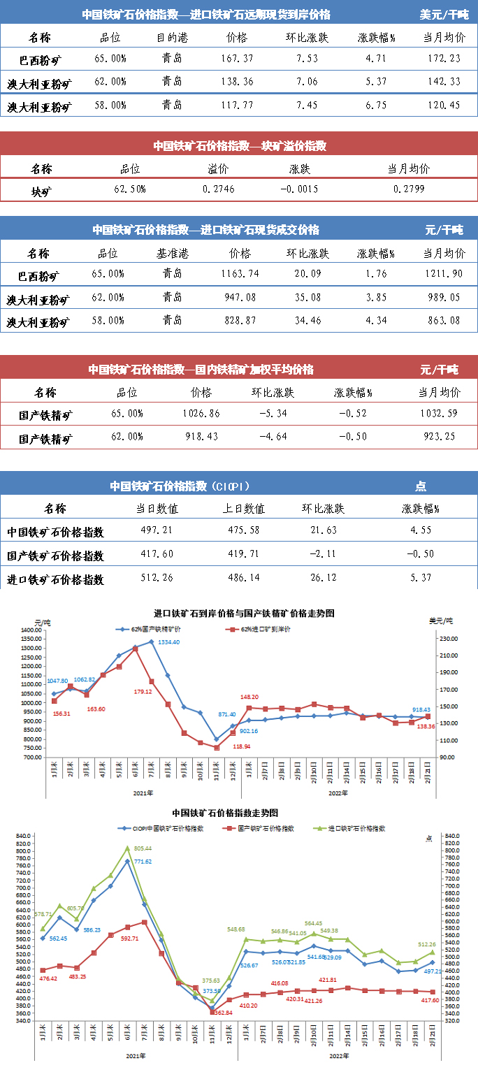 【行業(yè)指數(shù)】2月21日中國(guó)鐵礦石價(jià)格指數(shù)