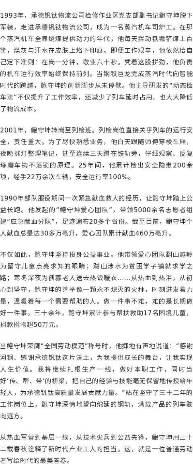 扎根一線守初心 三十二載鑄匠魂——記全國勞動模范、承德釩鈦物流公司檢修作業區黨支部副書記鮑守坤