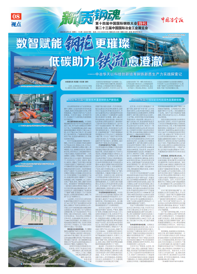 開創高端鎳鉻新材先河。中冶華天作為設計方打造的振石集團東方特鋼綠色高端鎳鉻新材智造項目,位于浙江嘉興,建設年產251.25萬噸鑄坯的煉鋼系統,并配套建設熱軋、退火酸洗、冷軋及配套公輔系統,是智能制造驅動鋼鐵新質生產力發展的典范。