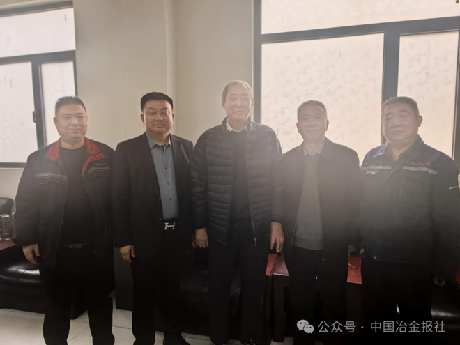 圖為2025年10月29日中國(guó)金屬學(xué)會(huì)專家委員會(huì)主任王天義(中間)、金鼎重工煉鐵廠廠長(zhǎng)江海峰(右1)、高爐主任王主任(左1)、豫興公司技術(shù)專家周西辰(左2)、周紅朝(右2)在熱風(fēng)爐操作室合影留念