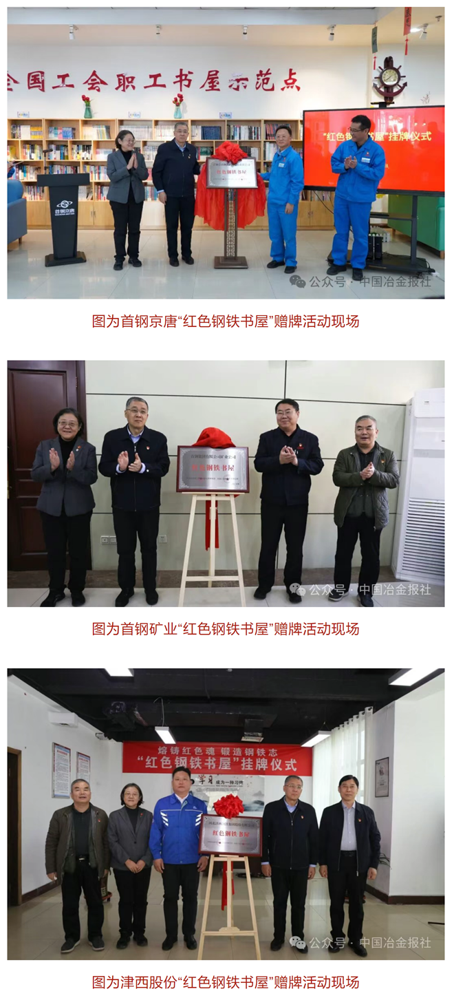 11月10日~11日,為深入推進全民閱讀,進一步落實“讀好專業書 做好答卷人”的行業倡議,為文化強國建設搭建更多具有鋼鐵行業特色的文化場景,由中國冶金職工思想政治工作研究會(以下簡稱“冶金政研會”)、冶金工業出版社聯合發起的“紅色鋼鐵書屋”建設活動花開河北:首鋼京唐的“逸致書屋”、首鋼礦業的“心靈驛站書屋”與“青年驛站書屋”、津西股份的“職工書屋”相繼獲贈“紅色鋼鐵書屋”標牌。各企業還分別召開了紅色文化共建座談會。