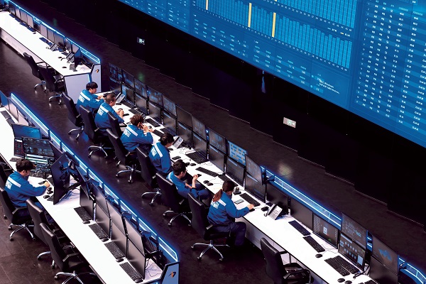2022年6月13日,中天鋼鐵集團(tuán)(南通)有限公司鋼鐵智慧中心正進(jìn)行試運(yùn)行。據(jù)悉,該中心總投入逾5億元,規(guī)劃總建筑面積1.39萬(wàn)平米,建筑高度為31米共5層,并遠(yuǎn)離生產(chǎn)區(qū)域5公里以外,同步配套大規(guī)模集控系統(tǒng)、智能制造平臺(tái)、自動(dòng)化控制系統(tǒng)、智能感知、視屏聯(lián)動(dòng)等,確保高爐、轉(zhuǎn)爐等操作崗位實(shí)現(xiàn)高集成度遠(yuǎn)程控制和安全生產(chǎn),全員勞動(dòng)生產(chǎn)率達(dá)到每年2000噸/人。圖為中天南通公司數(shù)字化控制中心。(本報(bào)記者 顧學(xué)超 攝)
