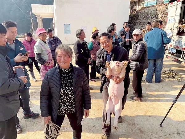 2021年1月14日,云南省宣威市海岱鎮(zhèn)臘谷村臘谷莊謝玉鳳和家人領(lǐng)到了自己的小豬,她高興的說(shuō),馬上要過(guò)年了,感謝昆鋼送給我們的新年禮物(如圖)。2021年初,昆鋼駐村工作隊(duì)投入72.9萬(wàn)元反哺資金,購(gòu)買405頭豬仔發(fā)放給村民。宣威市海岱鎮(zhèn)月亮田、臘谷村的405戶村民自己承擔(dān)300元,就可以認(rèn)領(lǐng)一頭市場(chǎng)價(jià)1800元豬仔進(jìn)行飼養(yǎng)。(王天俊/文 陳正華/攝)