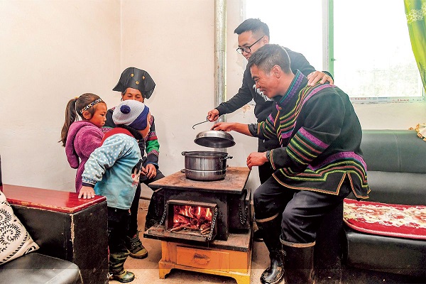 2020年10月28日,四川省涼山州喜德縣樂(lè)武鄉(xiāng)達(dá)洛村鞍鋼集團(tuán)攀鋼扶貧干部杜傳(右二)正在指導(dǎo)阿苦說(shuō)布(右一)使用生物質(zhì)爐,至此阿苦說(shuō)布一家人告別沿襲上千年的彝族“火塘”,過(guò)上窗明幾凈的新生活。阿苦說(shuō)布嘴里不停地說(shuō):“攀鋼,瓦吉瓦!(彝語(yǔ)很好的意思)”。“十四五”期間,攀鋼已向喜德、鹽源、鹽邊等扶貧點(diǎn)捐贈(zèng)1500余臺(tái)生物質(zhì)爐。 (特約通訊員 梁建偉 攝)