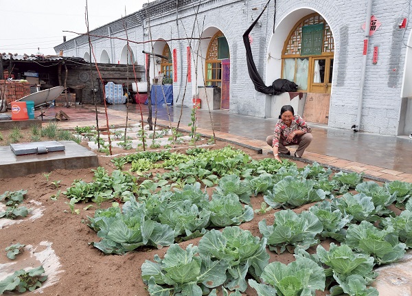 2020年6月11日,山西省保德縣腰莊鄉(xiāng)鋪房墕村村民陳秋梅在自家院子里高興地“擺弄”自種的各種蔬菜(如圖)。2020年,太鋼扶貧工作隊(duì)進(jìn)駐后,實(shí)施引水入戶工程,惠及全村102戶村民。用水方便了,村民們開始在院子里種植有機(jī)瓜果蔬菜,搞起了“菜園子”,實(shí)現(xiàn)了日常菜品自給自足,僅此一項(xiàng)工程平均每戶每年可降低生活支出800至1000元。(記者 王旭宏 攝)