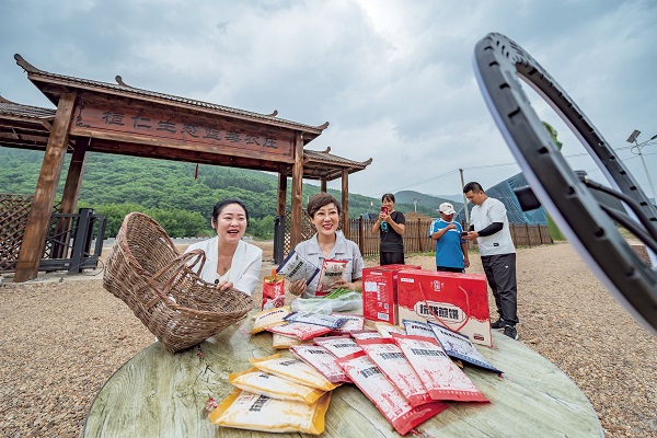2023年6月26日,遼寧省本溪市桓仁縣黑溝鄉(xiāng)石虎子村村民在本鋼駐村工作隊(duì)員張研(右)指導(dǎo)下,正在生態(tài)藍(lán)莓農(nóng)莊進(jìn)行電商直播帶貨(如圖)。2023年2月份以來(lái),鞍鋼集團(tuán)本鋼通過(guò)電商培育打好“幫扶牌”,投入專項(xiàng)資金對(duì)定點(diǎn)幫扶村的70余名村民進(jìn)行了電商直播培訓(xùn)。“農(nóng)產(chǎn)品+主播”成為助農(nóng)幫扶的重要推手,讓村民走上了電商銷售新戰(zhàn)場(chǎng),帶動(dòng)了村里藍(lán)莓、鴨蛋、小米等農(nóng)副產(chǎn)品的熱銷。(鄭開耀 高曉曦/文 楊鎮(zhèn)/攝)