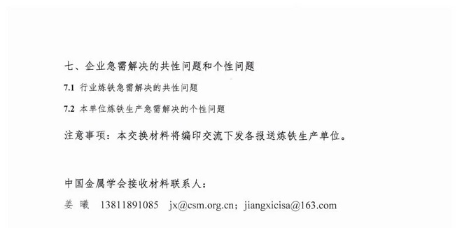 2. 2021年各企業煉鐵生產技術總結交換材料word版本。各單位需提供本企業交換材料,會議期間交流下發各生產單位。接收材料聯系人: