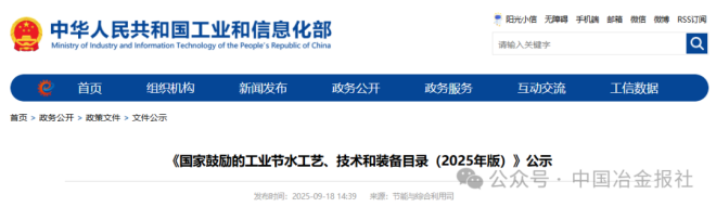 9月18日,中華人民共和國工業和信息化部發布了《國家鼓勵的工業節水工藝、技術和裝備目錄(2025年版)》公示。