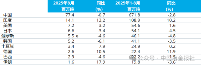 2025年8月全球粗鋼產(chǎn)量