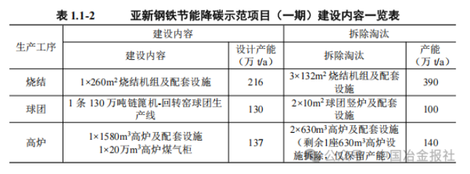 河南亞新鋼鐵集團有限公司建設項目產能置換方案分別于2017年12月15日、2023年11月16日在河南省工業和信息化廳予以公告,其中高爐煉鐵產能置換方案為退出廠區現有2座630m3高爐,建設1座1580㎡高爐,轉爐煉鋼能置換方案為退出廠區現有1座65噸轉爐(100萬噸),并在安陽華城博鑫棒材有限公司2座40噸轉爐(80萬噸)、安陽匯鑫特鋼有限公司2座40噸轉爐部分產能(24萬噸)基礎上置換建設1座150噸轉爐,并配套鐵水KR脫硫預處理、LF精煉和RH精煉。