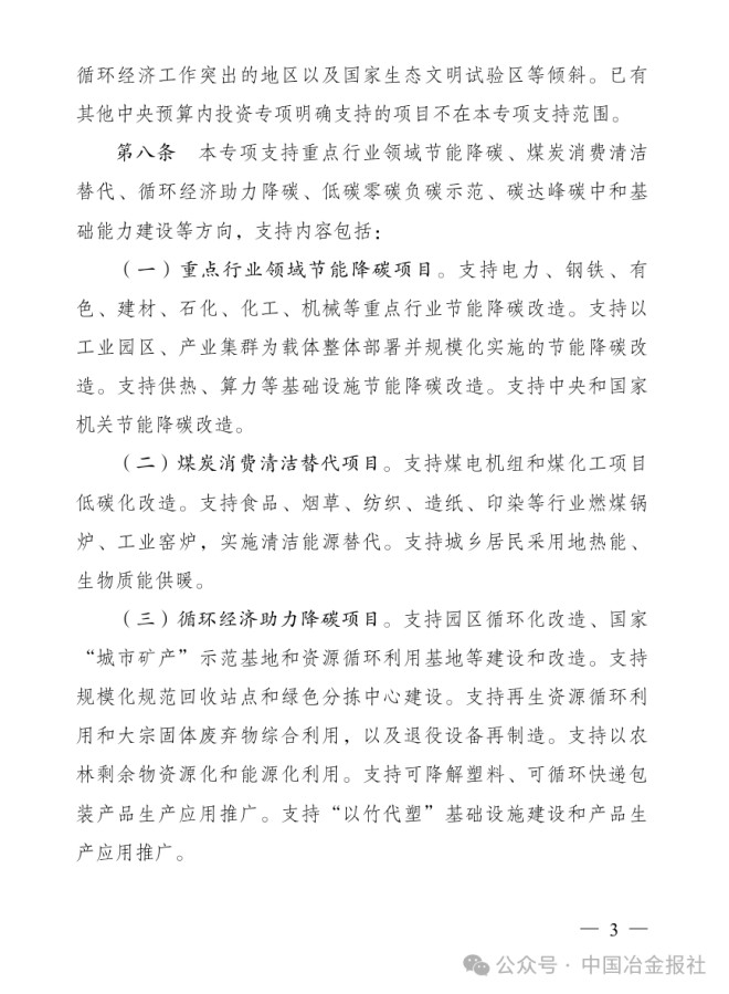 從《通知》中獲悉,本專項支持電力、鋼鐵、有色、建材、石化、化工、機械等重點行業領域節能降碳、煤炭消費清潔替代、循環經濟助力降碳、低碳零碳負碳示范、碳達峰碳中和基礎能力建設等方向。