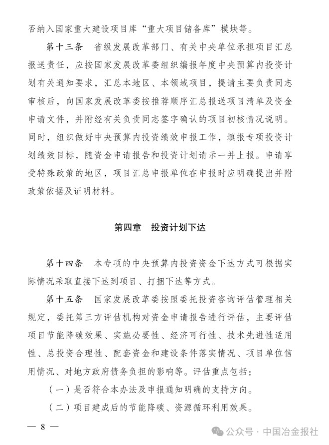 10月14日,國家發展改革委網站發布了關于印發《節能降碳中央預算內投資專項管理辦法》的通知(以下簡稱《通知》)。