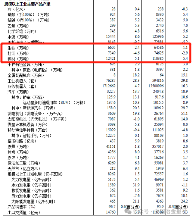 數據顯示:2025年9月份,我國粗鋼產量7349萬噸,同比下降4.6%;生鐵產量6605萬噸,同比下降2.4%;鋼材產量12421萬噸,同比增長5.1%。