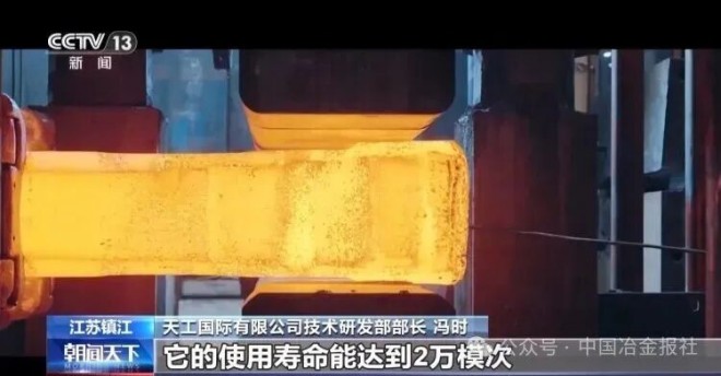 天工國際有限公司技術(shù)研發(fā)部部長 馮時:用傳統(tǒng)的方法去制備的時候,它的使用壽命大概只有6000模次就需要去更換了,通過粉末冶金的產(chǎn)品,它的使用壽命能達(dá)到2萬模次,未來有希望達(dá)到5萬或者8萬模次。