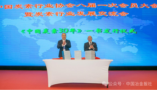 會上還舉行了《中國炭素30周年》一書的發行儀式,鞠自力和馬卓共同為新書揭幕。