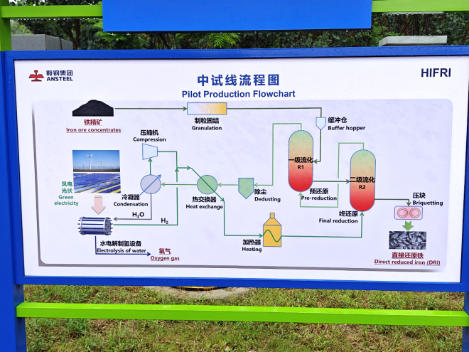 8月28日,《中國冶金報》記者在鞍鋼集團氫冶金項目新聞媒體溝通會上獲悉,鞍鋼集團建設(shè)的全球首套綠電綠氫流化床氫冶金中試線實現(xiàn)全流程工藝貫通,已穩(wěn)定產(chǎn)出金屬化率達到95%的綠色近零碳直接還原鐵產(chǎn)品,成功實現(xiàn)從實驗室研發(fā)到中試的跨越。
