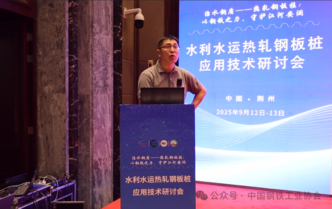 作為會議承辦方、工作組主任單位,河北津西鋼鐵集團股份有限公司總經理趙利欣介紹“破局之路”,技術應用研究所首席工程師(熱軋鋼板樁應用技術推廣工作組專家委員會主任)錢奕峰作《熱軋鋼板樁在水工領域的產品應用與發展》報告,詳解熱軋鋼板樁在水利領域應用的優點。他表示津西熱軋鋼板樁全球銷量占比超25%,獲中鋼協“金杯特優產品”稱號。在深中通道、黃茅海跨海通道中被稱為“定海神樁”;阜陽船閘項目中優化截面設計節省造價500余萬元;自主研發的生產監控系統實現全流程溯源,施工模擬平臺可精準預判地質受力。錢奕峰表示“我們不僅提供材料,更提供‘設計+施工+售后’一站式解決方案?!?/div>