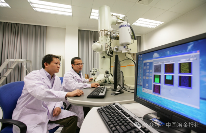 圖為江蘇省(沙鋼)鋼鐵研究院研究人員操作分析檢測設備