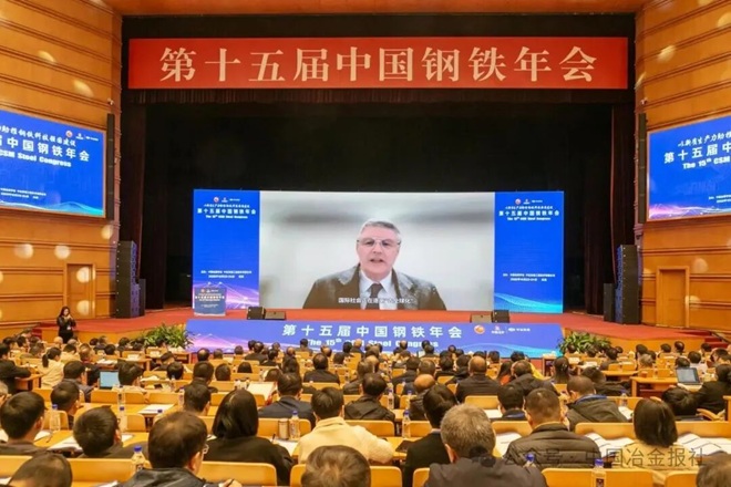 中國鋼鐵工業協會黨委書記、執行會長何文波,中國金屬學會理事長張曉剛,世界鋼鐵協會總干事埃德溫·巴松,中冶京誠工程技術有限公司黨委書記、董事長韓冰為大會致辭。北京科技大學學術委員會主任、中國工程院院士謝建新;東北大學黨委副書記、副校長,中國工程院院士唐立新;中國有色金屬工業協會黨委書記、會長葛紅林;河鋼集團有限公司黨委書記、董事長劉鍵;首鋼集團有限公司黨委副書記、董事、總經理邱銀富作大會主旨報告。中國金屬學會常務副理事長田志凌、副理事長兼秘書長王新江分別主持了大會開幕式和主旨報告環節。
