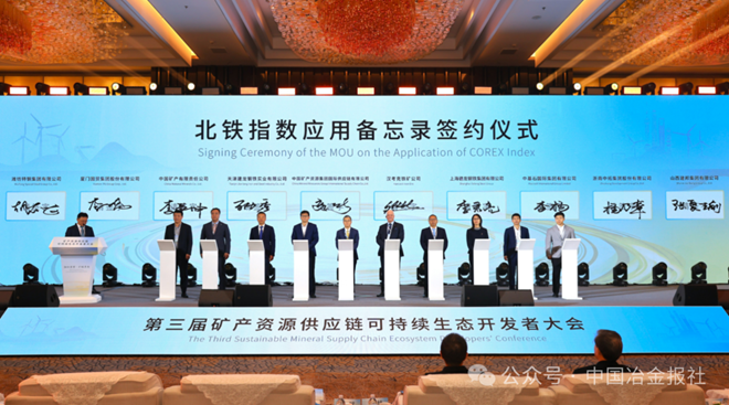 11月6日,在第三屆礦產(chǎn)資源供應(yīng)鏈可持續(xù)生態(tài)開(kāi)發(fā)者大會(huì)上,中國(guó)礦產(chǎn)資源集團(tuán)國(guó)際供應(yīng)鏈有限公司、上海德龍鋼鐵集團(tuán)有限公司、天津建龍鋼鐵實(shí)業(yè)有限公司、廈門(mén)國(guó)貿(mào)集團(tuán)股份有限公司等10家鋼鐵產(chǎn)業(yè)鏈上下游重點(diǎn)企業(yè)共同簽署北鐵指數(shù)應(yīng)用備忘錄,將逐步在鐵礦石貿(mào)易中采用北鐵指數(shù)作為結(jié)算依據(jù)。