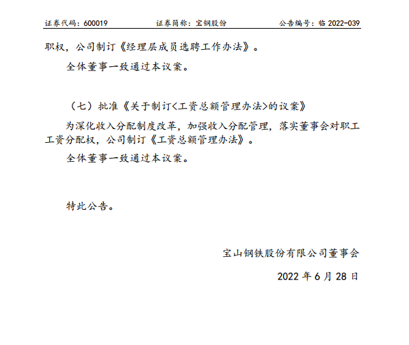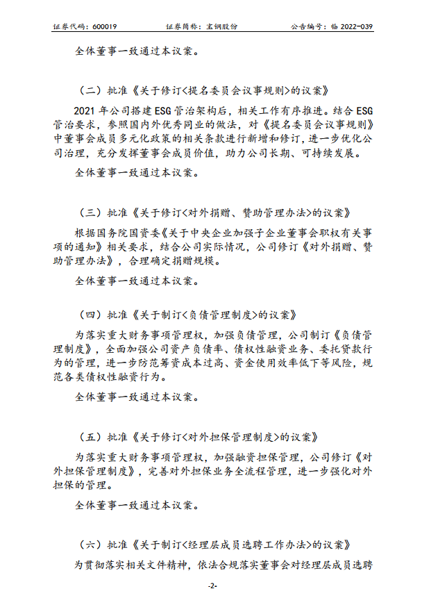 寶鋼股份第八屆董事會第十五次會議決議公告