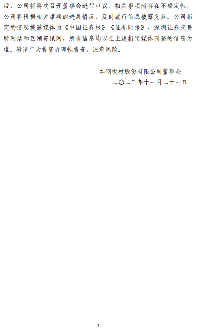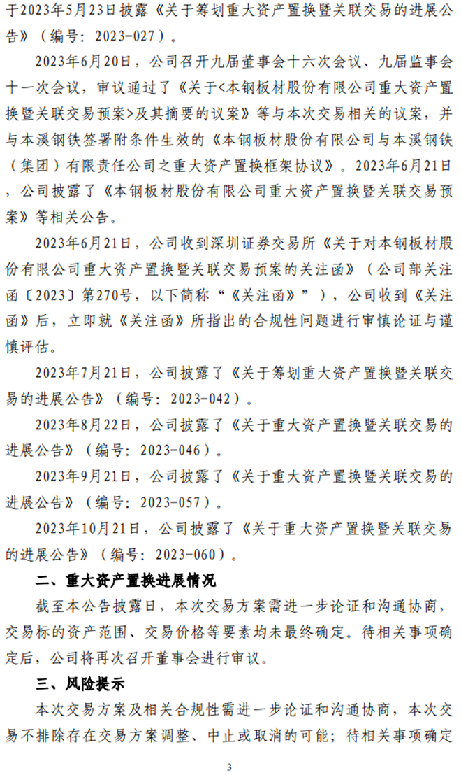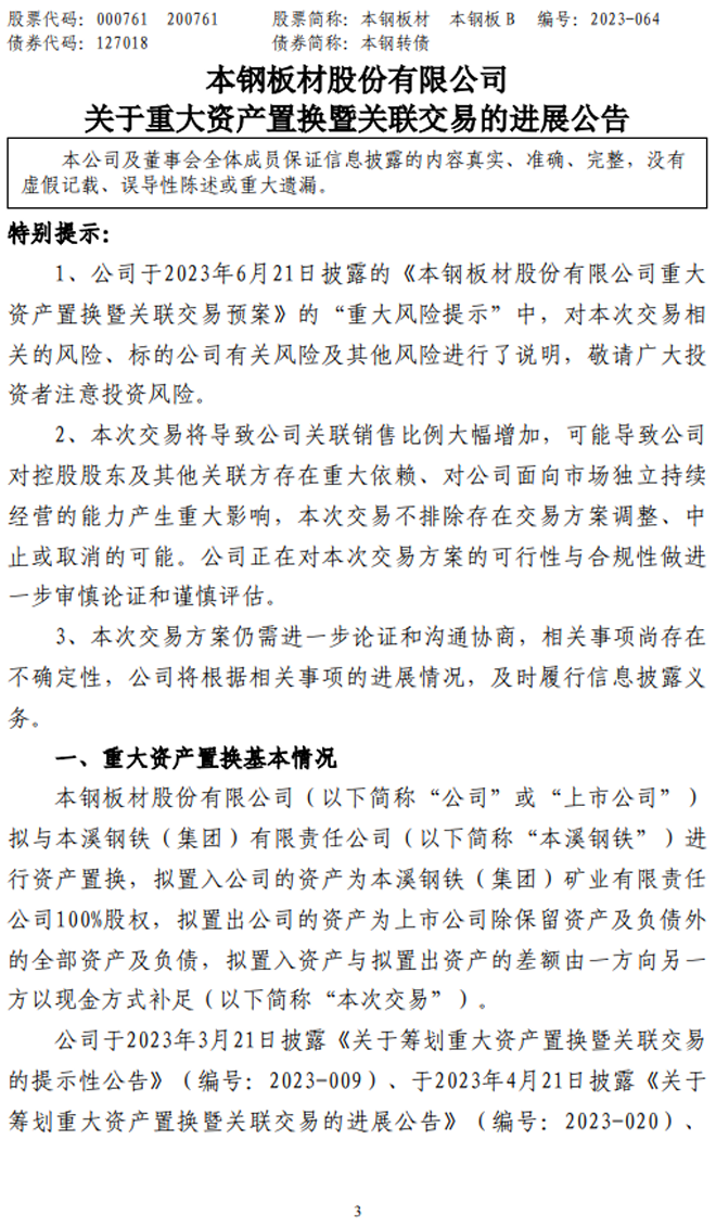 本鋼板材:本鋼板材股份有限公司關于重大資產置換暨關聯交易的進展公告