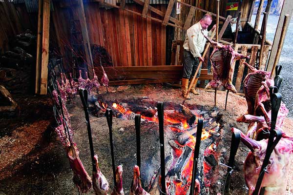 在南里奧格蘭德州,一名男子在戶外制作炭火烤肉。(作者:Kais Ismail)