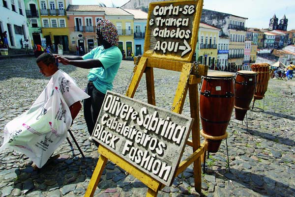 2005年10月20日,一位理發師在薩爾瓦多路邊給顧客理發。(作者:陸中秋)