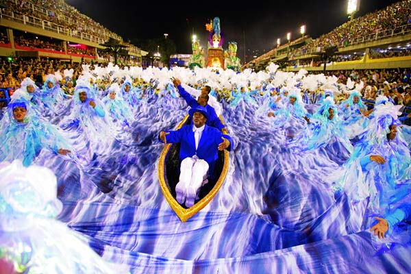 2017年2月28日,里約熱內盧的特級組桑巴舞表演者參加巡游活動。(作者:李 明)